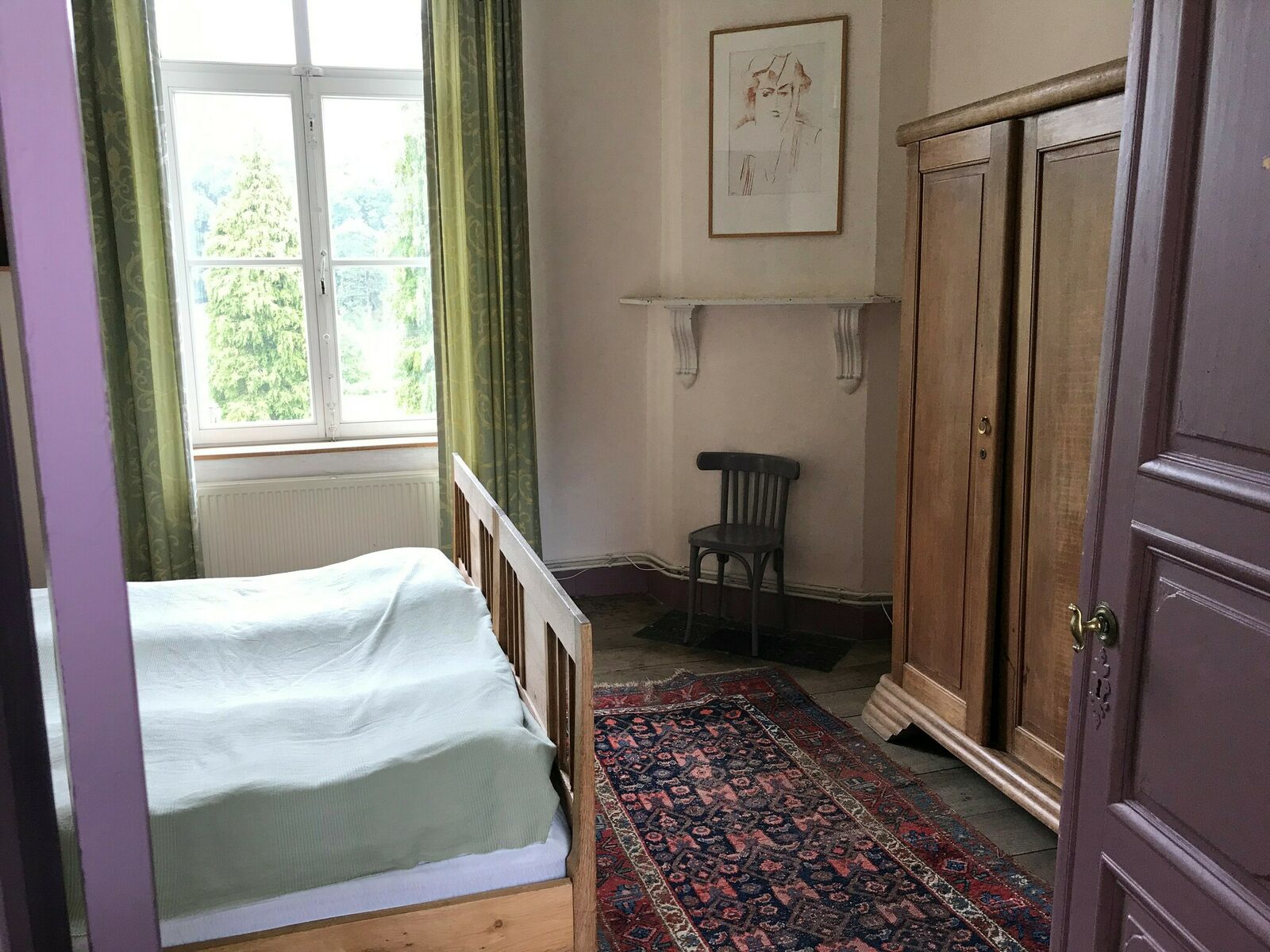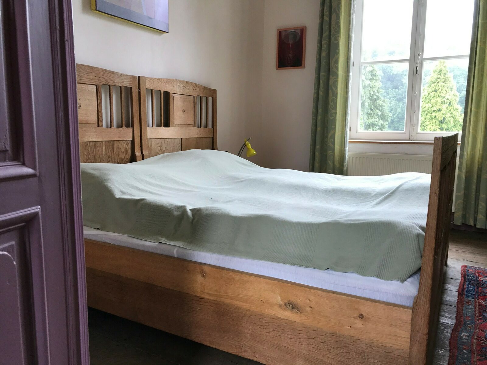 Slaapkamer voor 2 personen met grote kloosterbedden (eenpersoonsbedden).