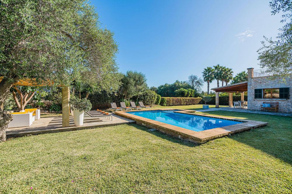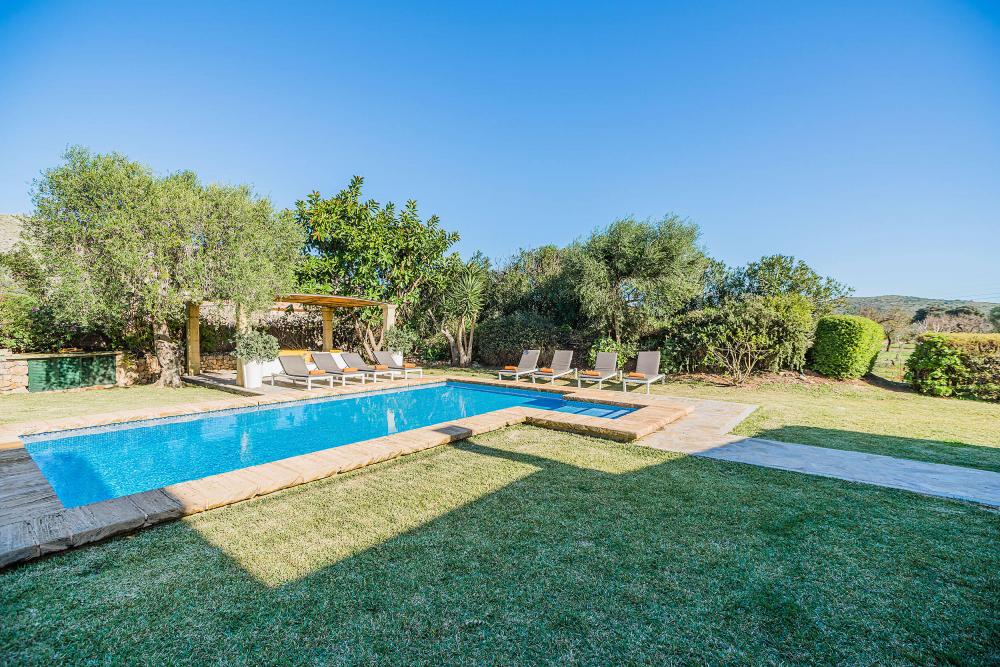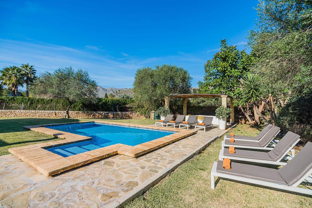Font Xica Petit is een zorgvuldig gerestaureerde boerderij, ruim en luchtig, met 4 slaapkamers, 4 badkamers, een groot privé zwembad en uitgebreide buitenruimtes. Gelegen tussen de oude stad Pollensa en de zandstranden van Puerto Pollensa is deze villa een bestseller dankzij het gastvrije en ontspannen gevoel samen met de aangename omgeving.Binnen is de villa verdeeld over 2 verdiepingen en is gerestaureerd met een echt persoonlijke touch en de inrichting is zeer stijlvol. De voordeur leidt naar de woon-/eetkamer, die wordt gescheiden door een charmante boog en is ingericht in zachte pastelkleuren. Naast de zitkamer is er een moderne, volledig ingerichte keuken, compleet met grote koelkast. Deuren leiden vanuit de keuken naar een terras met een stenen BBQ.Op de begane grond bevinden zich ook een slaapkamer met twee eenpersoonsbedden en een doucheruimte (met inloopdouche). Een trap leidt naar twee slaapkamers met twee eenpersoonsbedden, beide met een eigen badkamer met douche en een gedeeld balkon met een prachtig uitzicht over het omliggende platteland. Op de bovenverdieping is er ook een tweepersoonsslaapkamer met een complete badkamer (jacuzzi bad en een aparte douche). Het zwembad heeft gazon aan drie zijden en een aangename patio aan de andere kant, perfect om te zonnebaden en te ontspannen onder de Mallorcaanse zon. Naast het zwembad is er ook een uitnodigende pergola, met rotan sofa’s en een biljarttafel. Het zwembad kan, op verzoek, ook verwarmd worden (tegen betaling). ZWEMBAD : B 8m x 4m (D 1m x 1.8m) Romeinse treden & verwarmbaar. AFSTANDEN :Strand 5.6km / Pollensa 4.5km / Puerto Pollensa 4.4km / Cala St Vicente 4.7km / Alcudia 10.1km / Golf 7.7km / Supermarkt 3.1km / Restaurant 4.5km