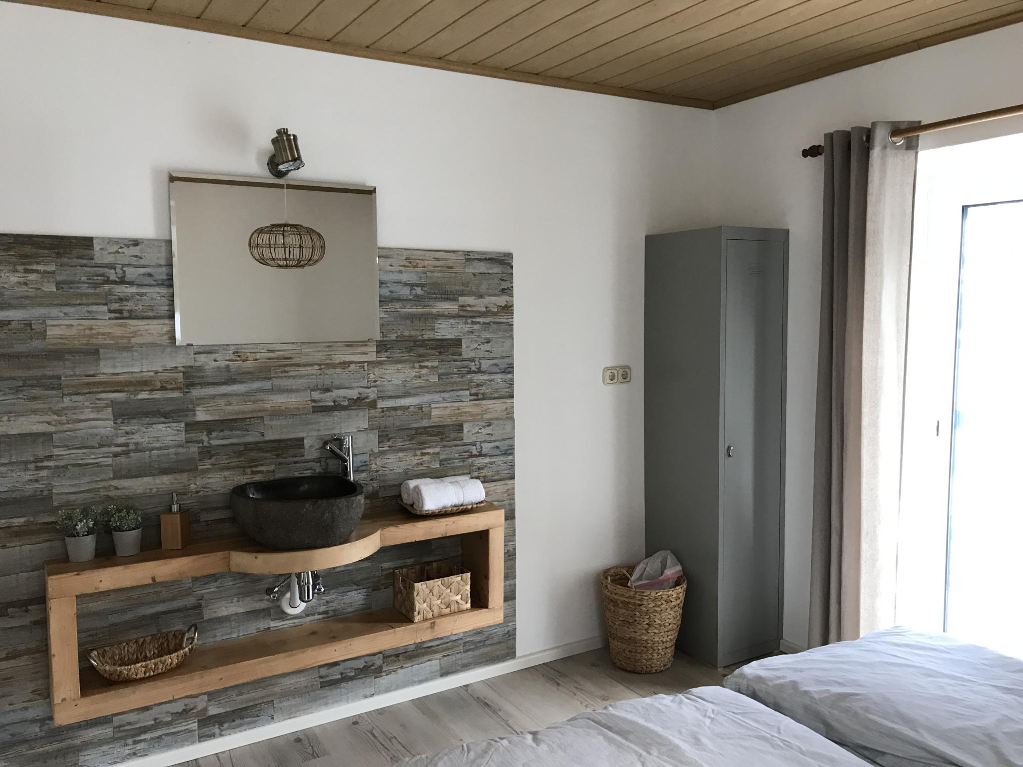 Begane grond: (slaapkamer(2x 1-pers. bed(90 x 200 cm)), slaapkamer(2x 1-pers. bed(90 x 200 cm), wastafel), slaapkamer(4x 1-pers. bed(90 x 200 cm)), badkamer(ligbad, douche, wastafel, wc), gemeenschappelijke ruimte(buitenom bereikbaar)(2x eettafel(12 personen), dart))