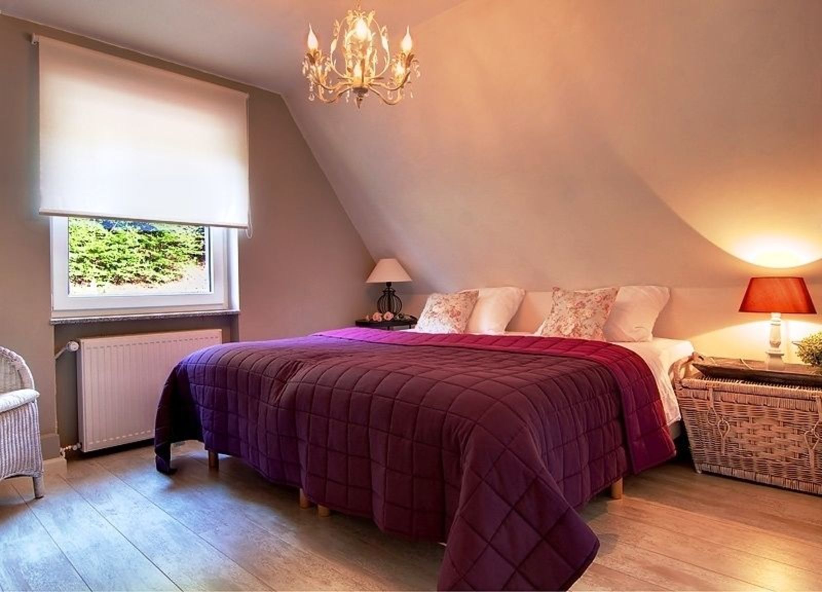 Lavendel: slaapkamer met 1 tweepersoonsbed (1.40m) met 2 boxspringmatrassen (0.70×2.00m).
