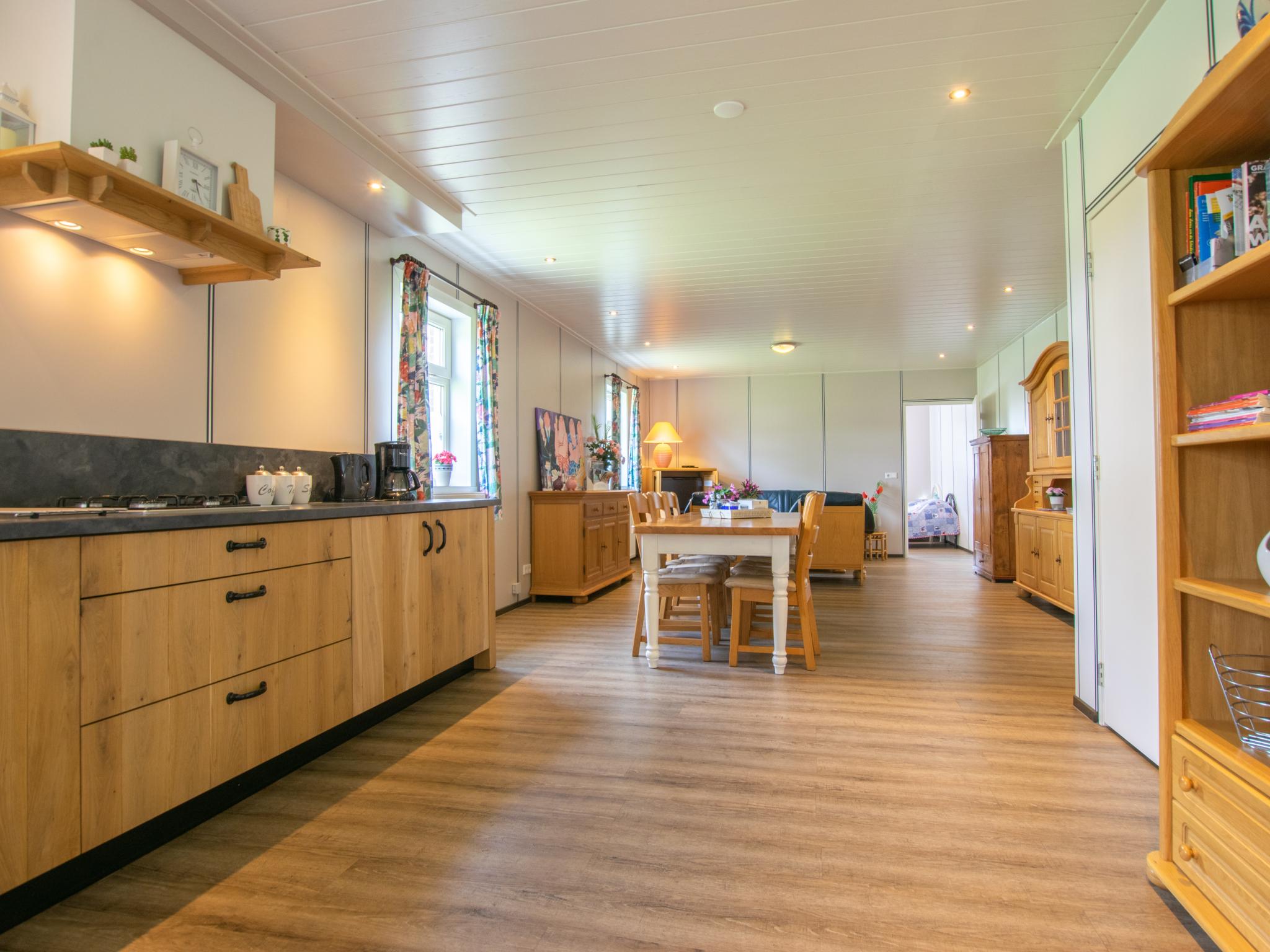 Begane grond: (hal, open keuken(waterkoker, fornuis(4 kookplaten, gas), afzuigkap, koffiezetapparaat(filtermaling, pads), magnetron, koelkast), woon/eetkamer(TV, eettafel, zithoek), slaapkamer(2x 1-pers. bed, 2-pers. bed), badkamer(douche, wastafel, wc))