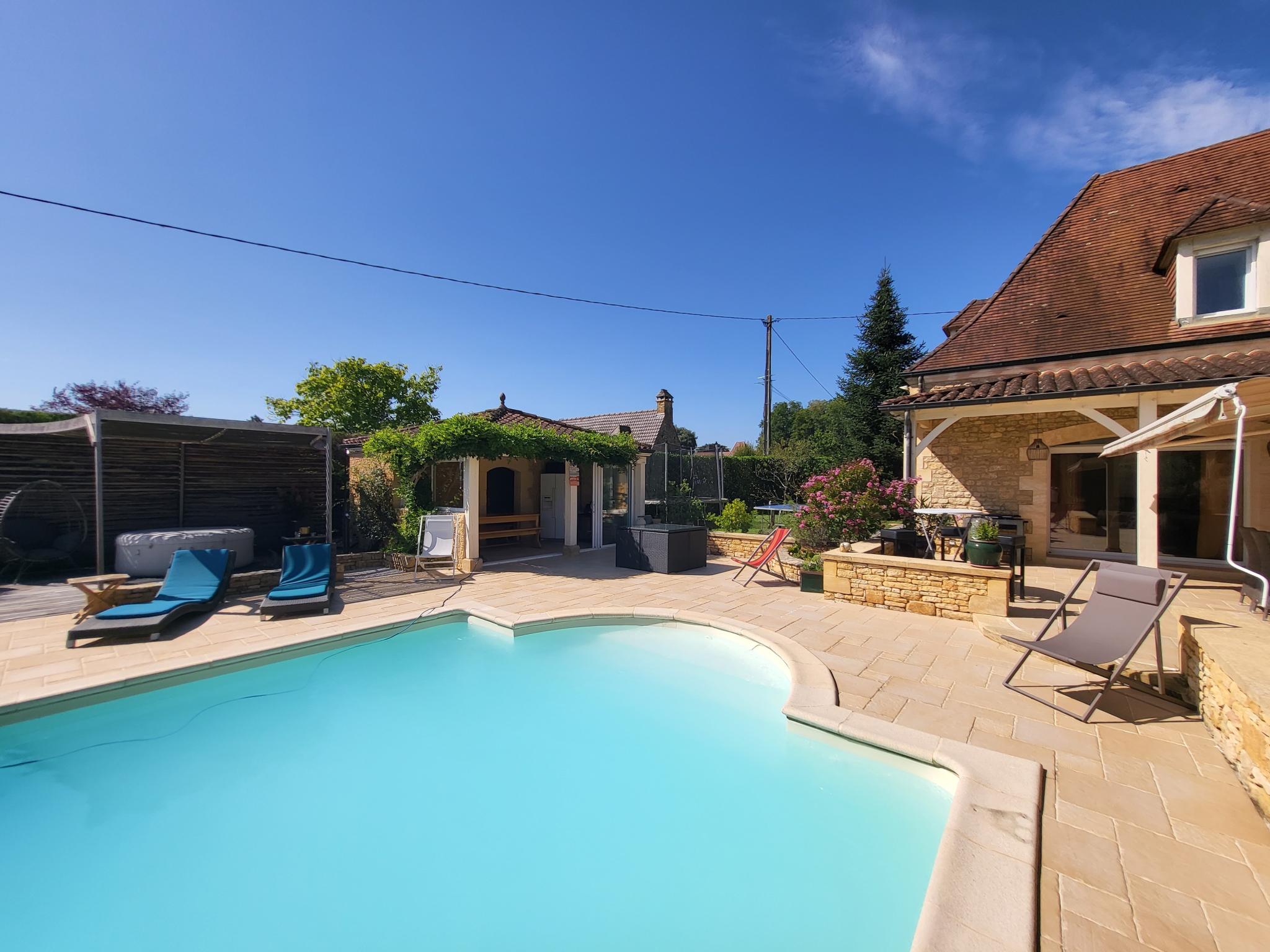 Luxe landhuis aan de rand van het charmante dorpje Carsac Aillac op slechts 10 km van Sarlat en niet ver van Groléjac en Domme. Dit is de mooiste regio van de Dordogne, en het dorp ligt dan ook aan de grote rivier, en kijkt uit over de imposante vallei van de Dordogne.