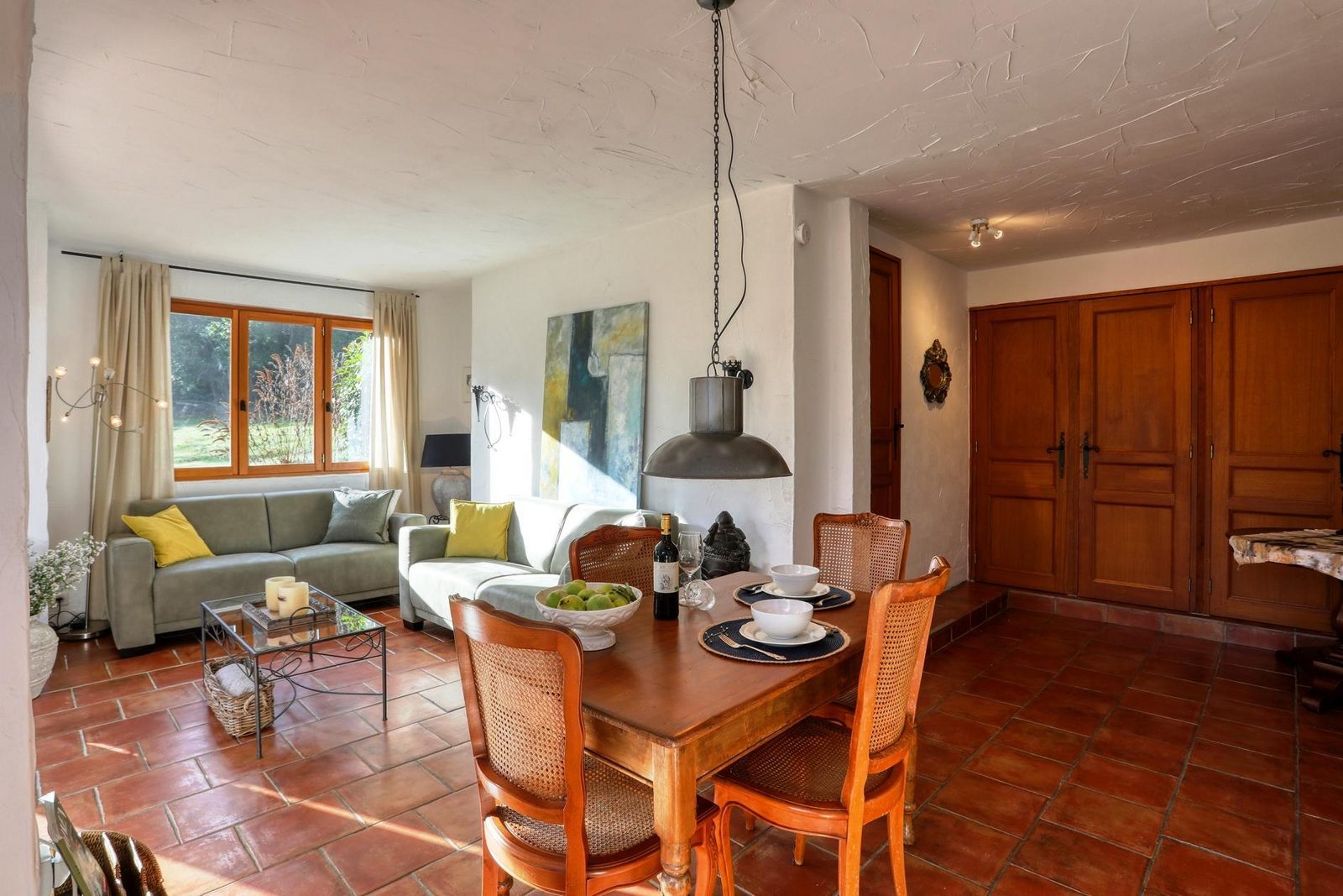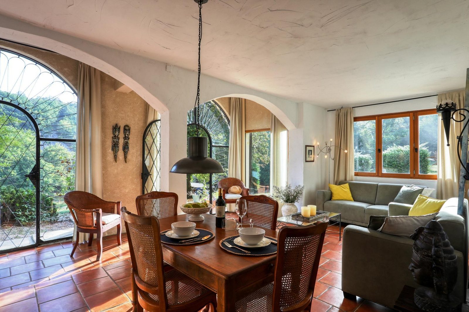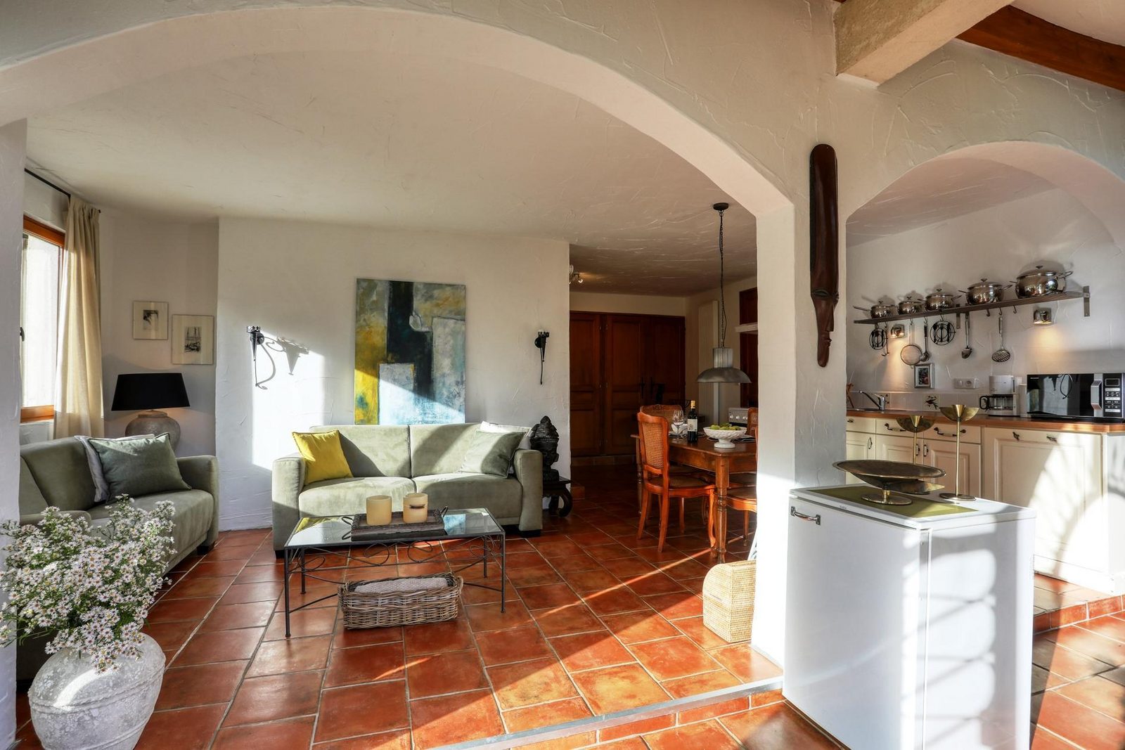 Terras met tuinmeubilair gelegen aan de voorzijde met uitzicht over de vallei en het zwembad. De ramen zijn voorzien van luiken, deze zorgen voor koelte in de zomer en een langere nachtrust.