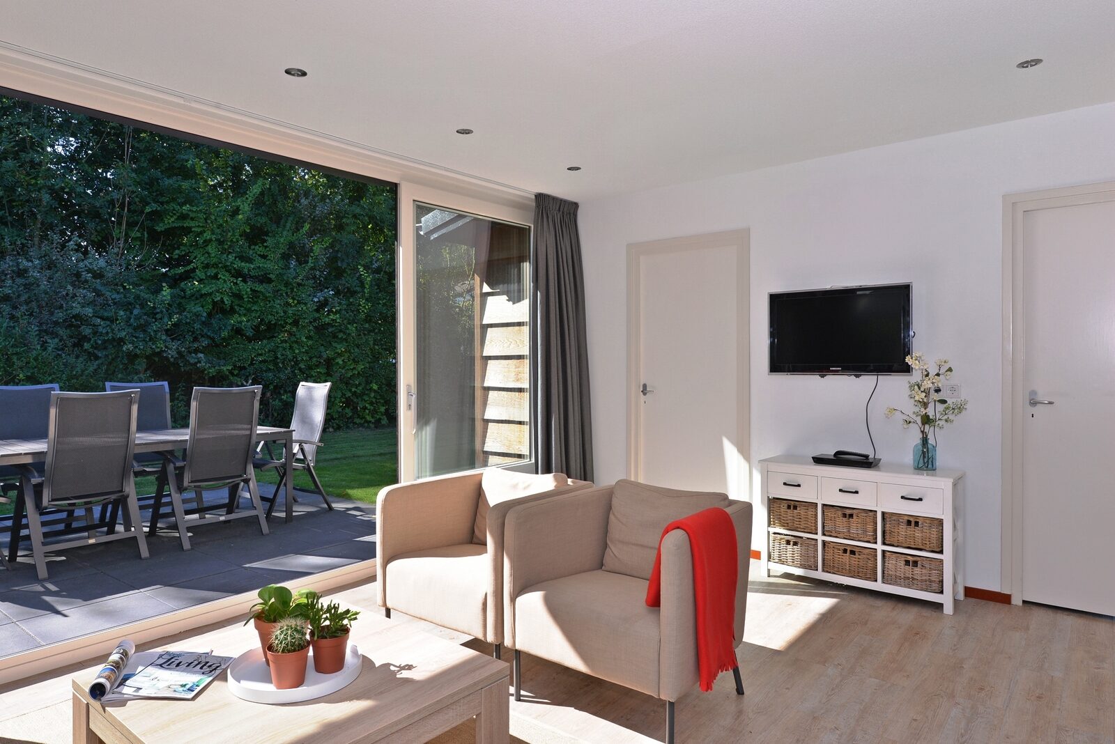 - Terras, bereikbaar via de woonkamer. Het terras ligt op het zuiden.